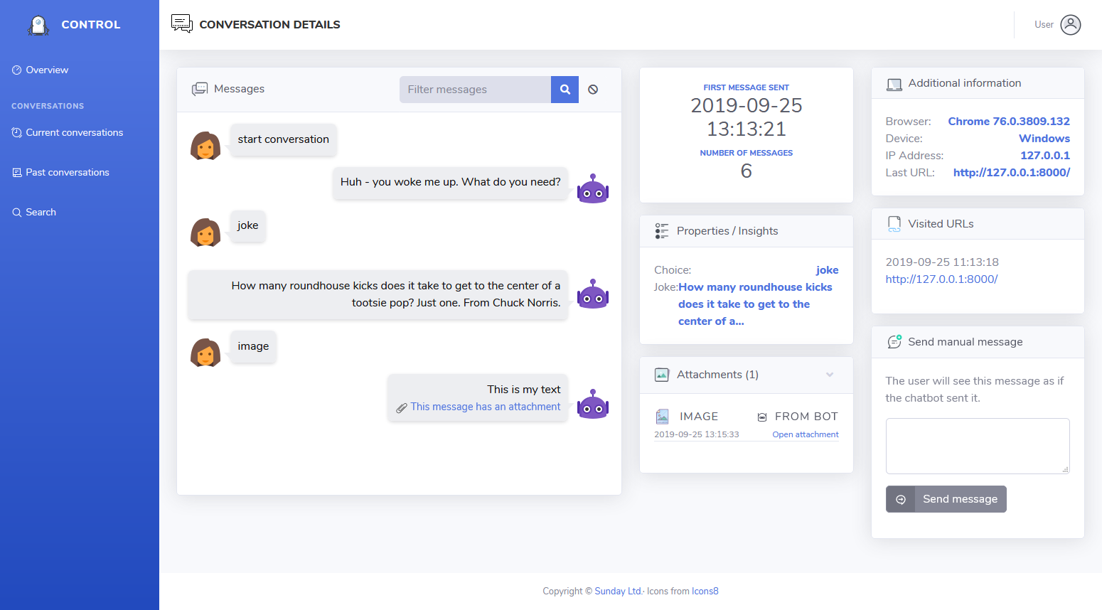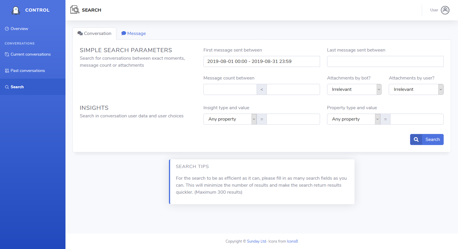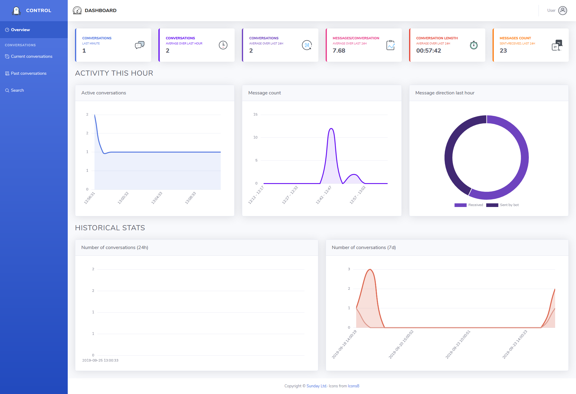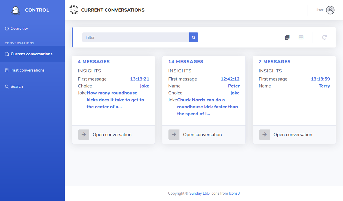 Any chatbot can be a pain to manage if you we can not see what it does. Our chatbot solution provides a nice dashboard solution and advanced search to both have a quick glance and detailed information at the same time.